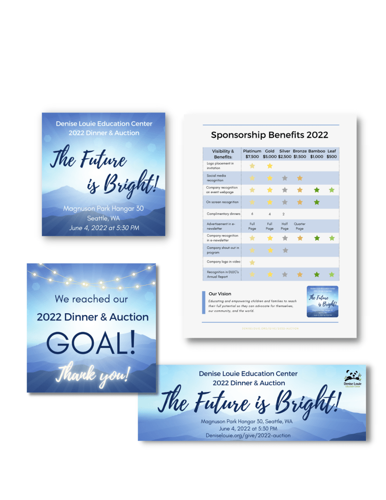 Our 2022 Dinner & Auction was in person for the first time in two years, and we wanted a light and hopeful feel to our messaging.